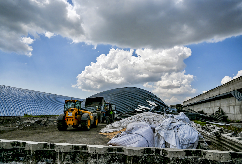 Then came the war, and Oleh’s new granary was one of the first targets of the occupying artillery when, on Feb. 24, they began shelling the village where he farms. Half of his harvest was stored in this granary.