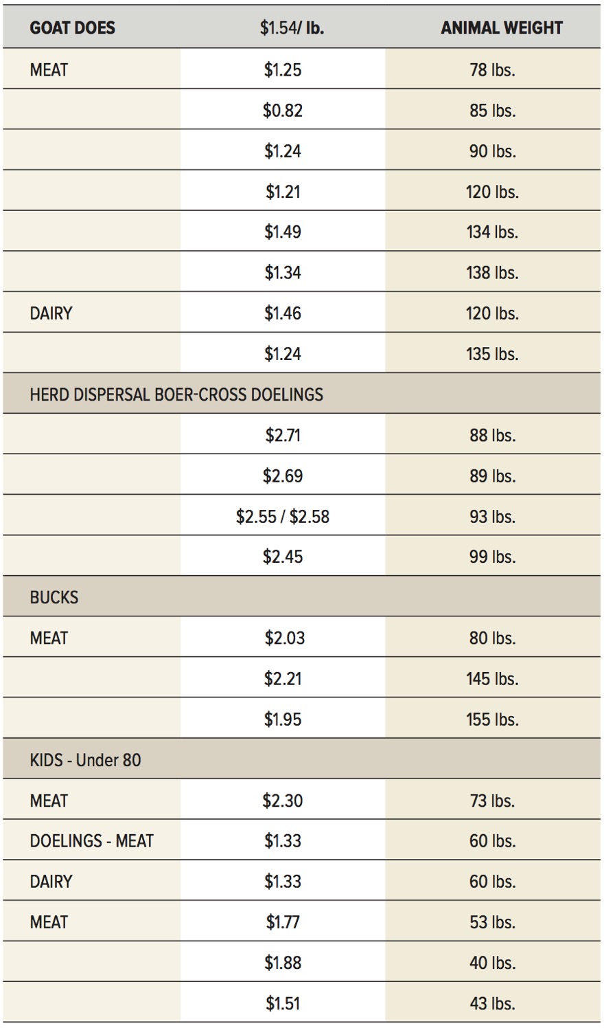 The prices ranged from $1.11 to $1.27 per pound, for a weight range from 140 to 148 pounds. For comparison purposes, the weight range of 140- to 164-pound sheared ewes saw a price range from $1.29 to $1.38 per pound.