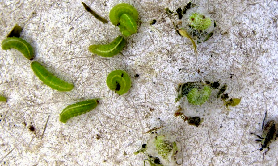 Agronomists started sending in photos and they were identified as hover fly maggots, legless worm-like things that were decimating the aphids. They would blindly tap around until they find an aphid, spear it with their mouthparts and suck the juice out of it. After that they’d discard it and find another.