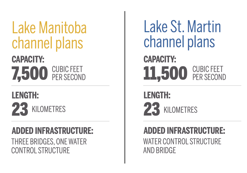 There were calls for two channels, one running from Lake Manitoba to Lake St. Martin and an expanded replacement to the emergency channel dug between Lake St. Martin and Lake Winnipeg. However, the project had been mired with delays.