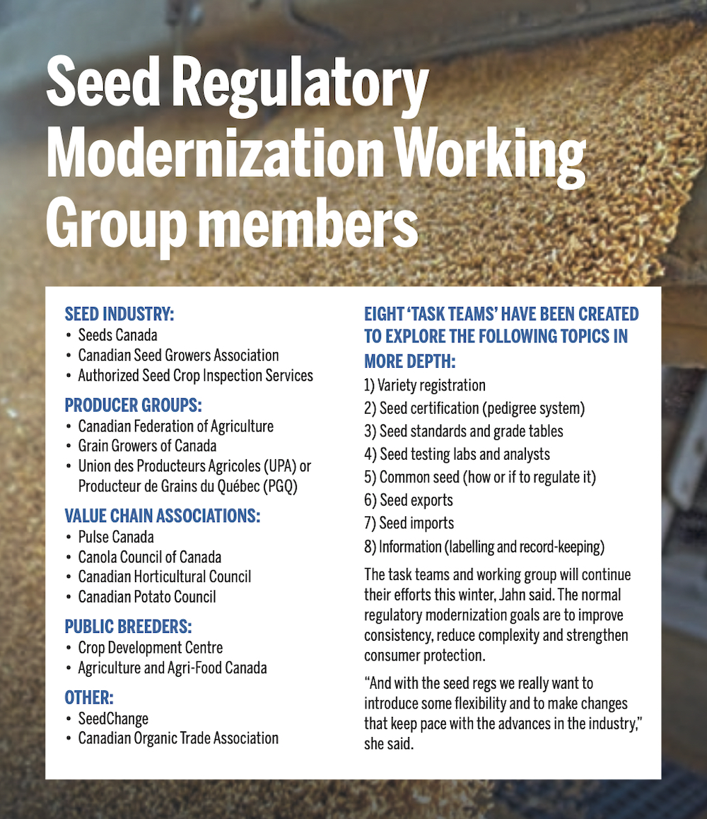 If all goes well, farmers will be consulted on possible seed regulatory changes in the winter of 2022-23, Jahn said.