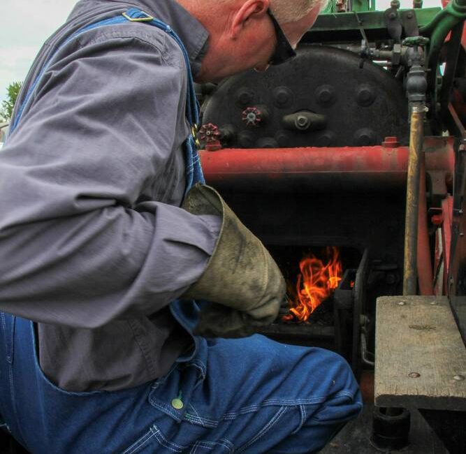 Steam school is a weekend training event for steam engine operators who want to get their operator’s licence from the province. This licence requires operators to pass a written test, acquire 120 hours of operation experience, and pass a driving test.