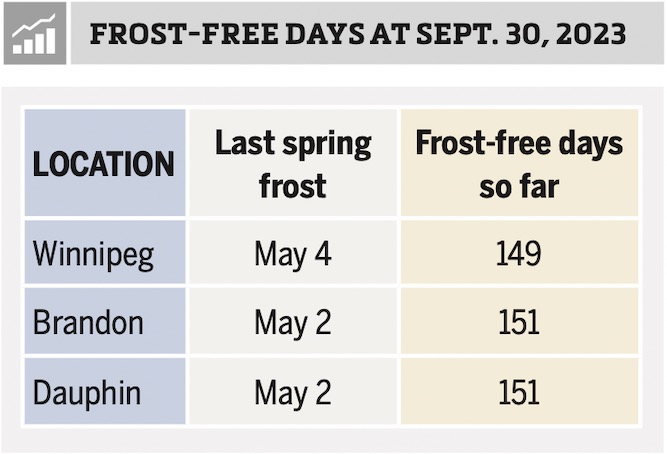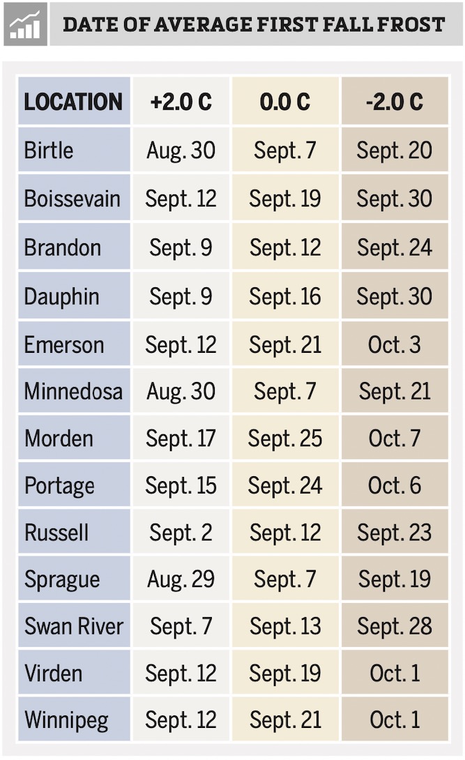 It’s time to talk about fall frost and the length of this year’s frost-free season. So far, most areas of agricultural Manitoba have not yet experienced frost – or have they?